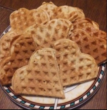 4 eggs, 100 grams of brown sugar, (can and ordinary), 100ml oil, 100ml milk, 4 tablespoons of honey, 30 g Nesquik (cocoa), 10 grams of cinnamon, 2 vanilla sugar, 1 baking powder, 400 grams of flour all ingredients mix and bake in the machine for waffles.
